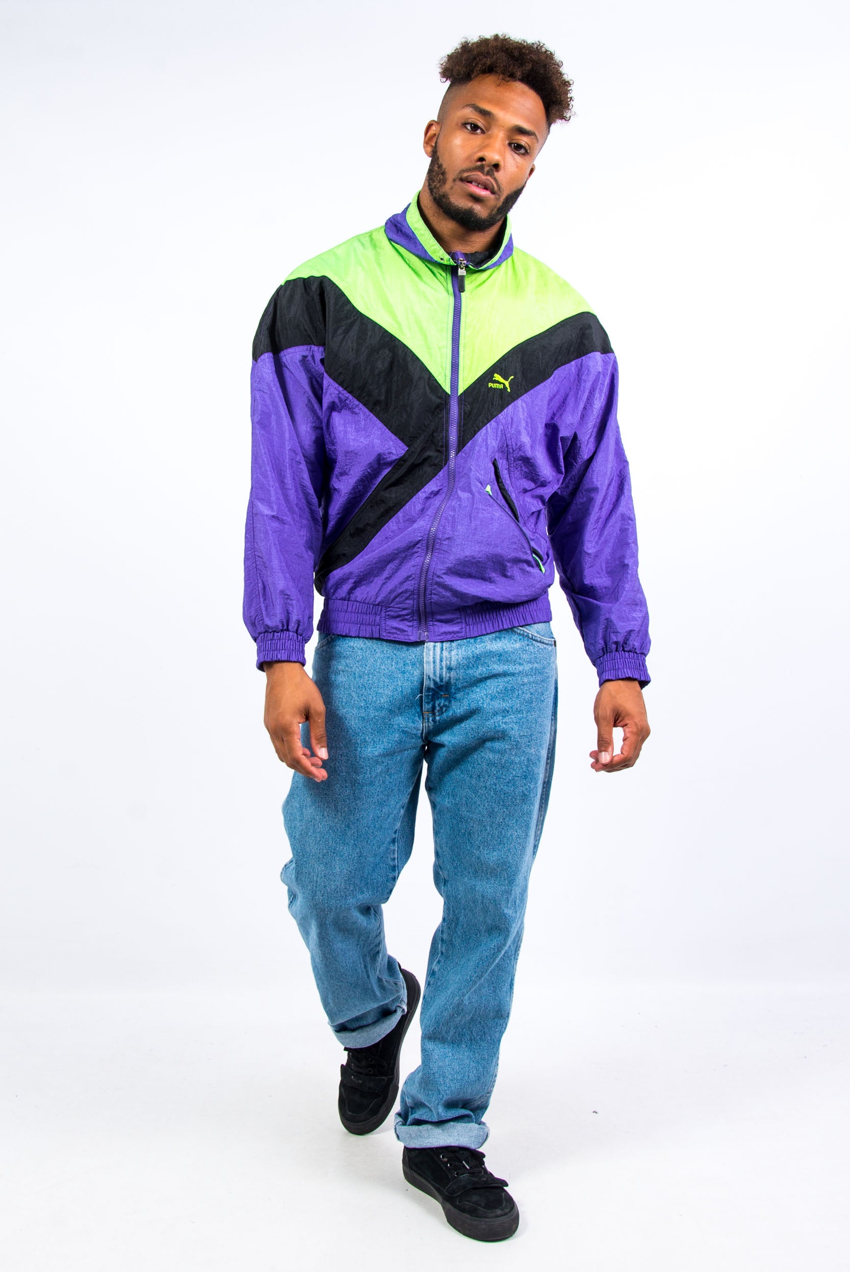 90's Puma colour block windbreaker jacket in a crinkle effect fabric with embroidered logo on chest.