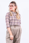 Vintage 90's check sheer blouse with 3/4 sleeves.