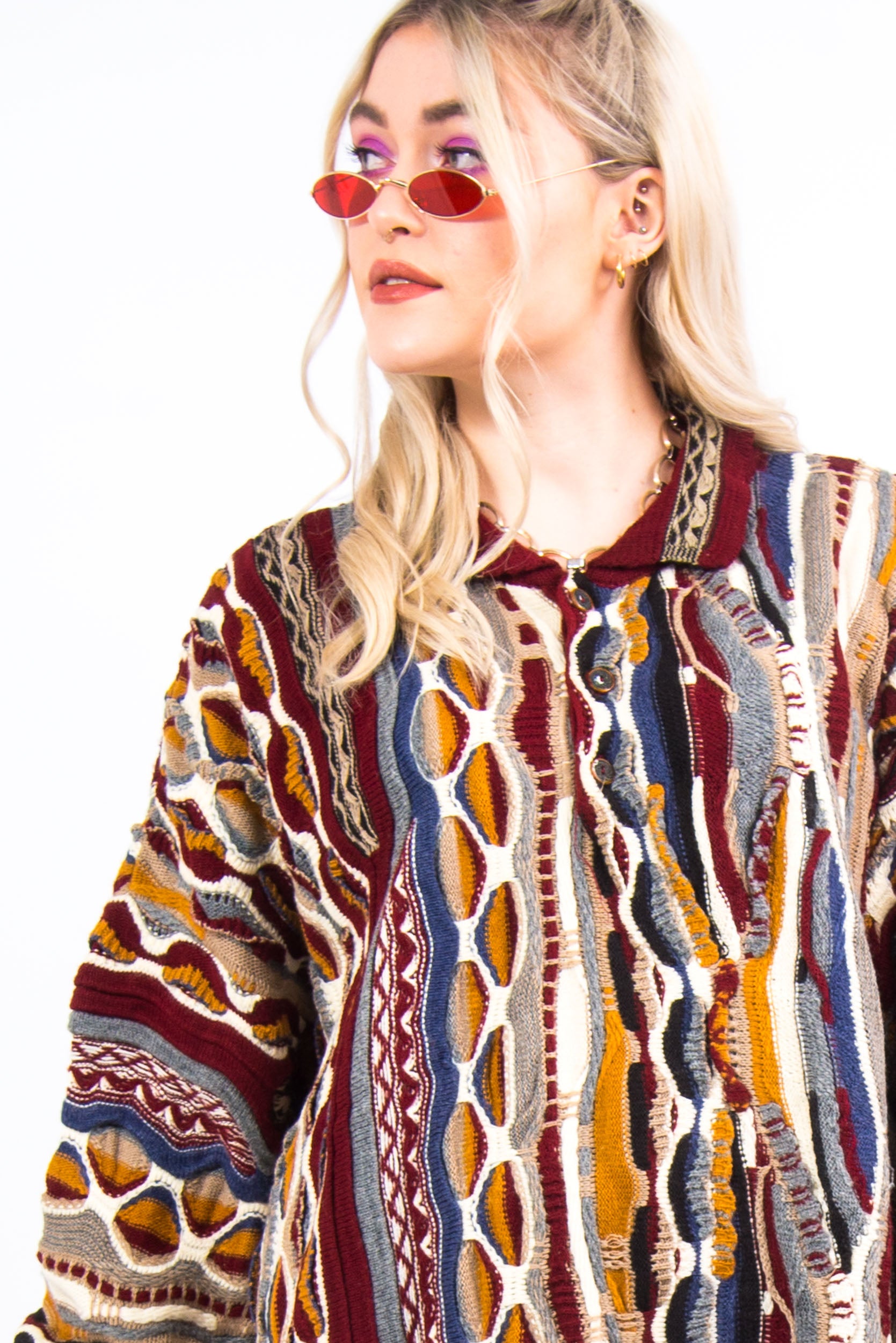 Vintage 90's Coogi style knit jumper with button neck fastening and collar.