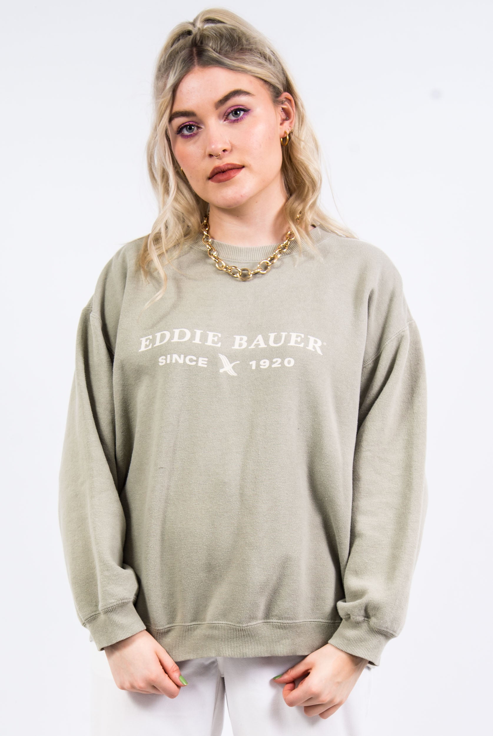 Vintage 90's Eddie Bauer sweatshirt with spell out on the front.