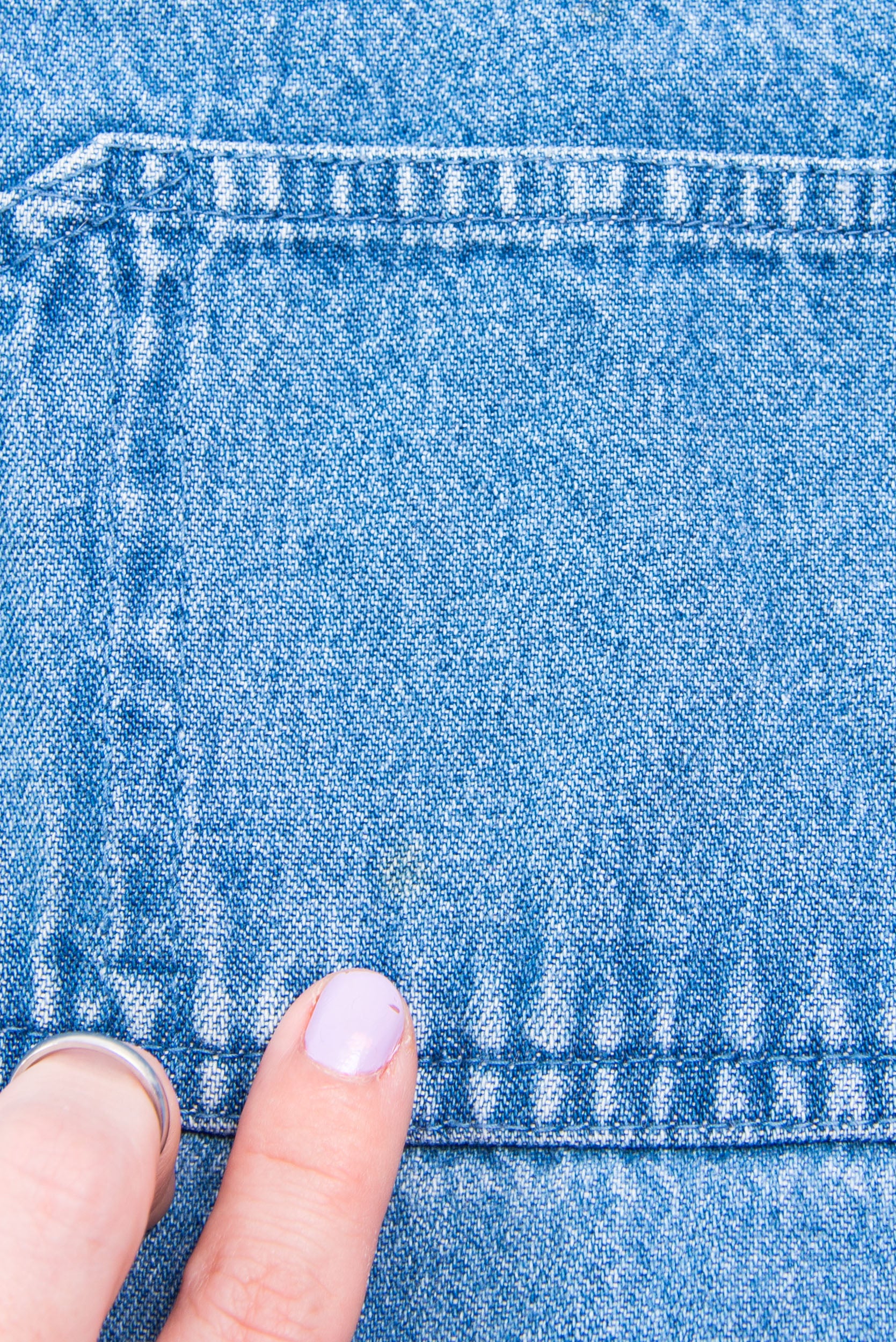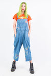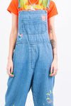 Vintage 90's blue denim dungarees with embroidered butterfly detail. DUNGAREES HAVE YELLOW MARKS ON FRONT OF ONE LEG AND ON FRONT OF BIB (SEE PICS) VERY MINOR.
