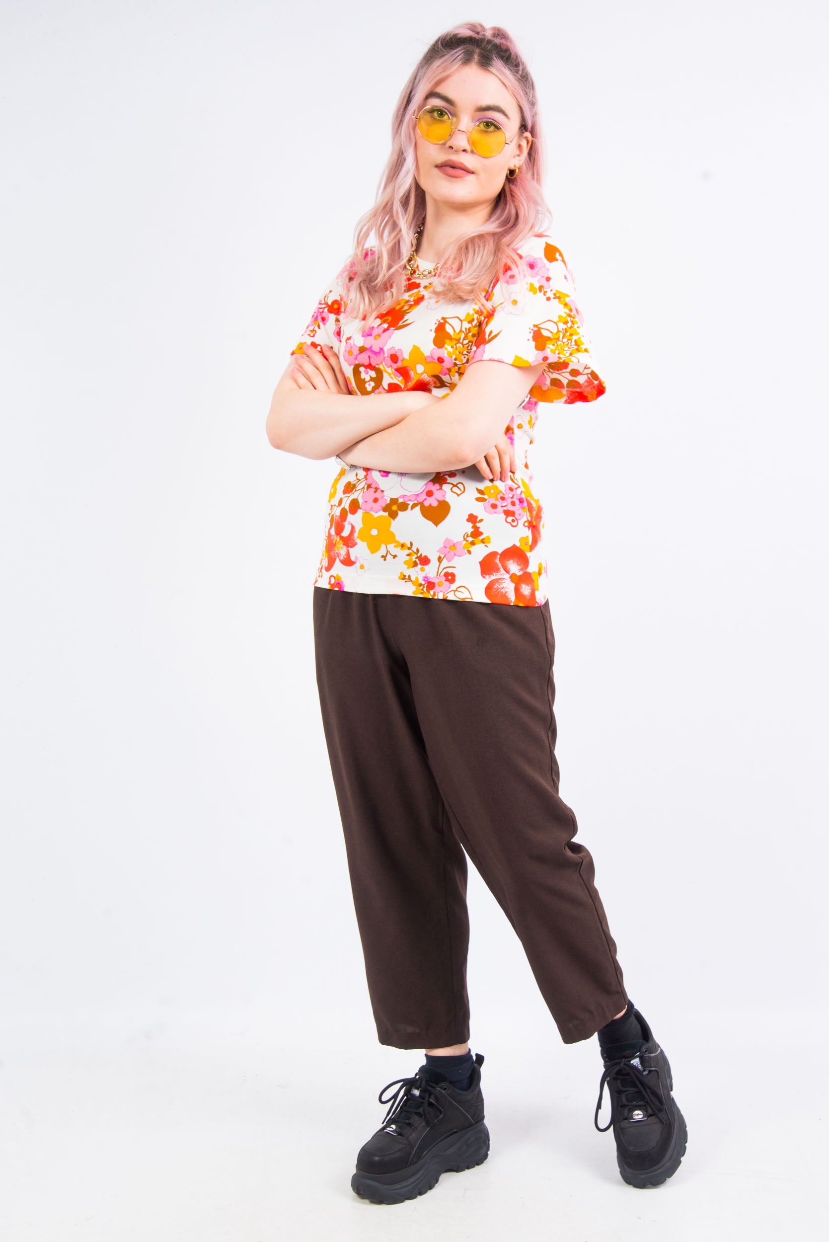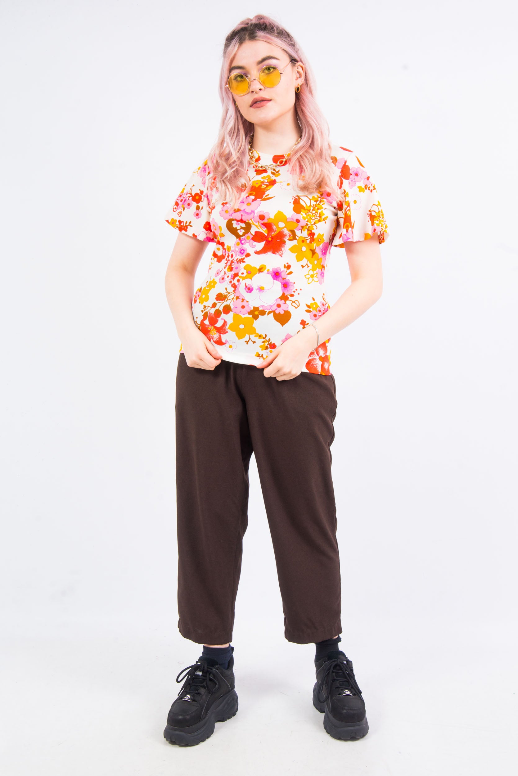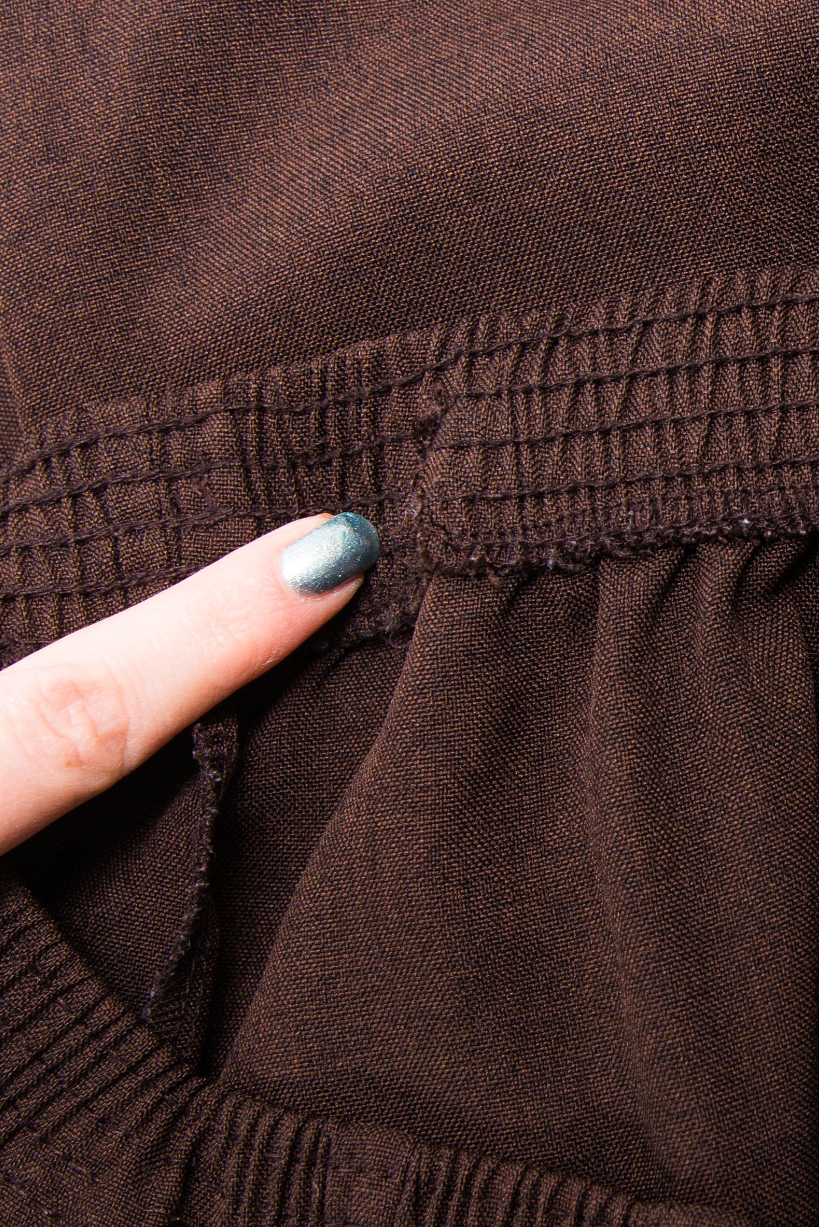 Vintage 90's brown high waist trousers with elasticated waist and pockets. TROUSERS HAVE A SPLIT ON THE INNER OF ELASTICATED WAIST BAND (SEE PICS).