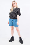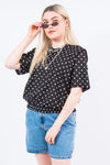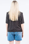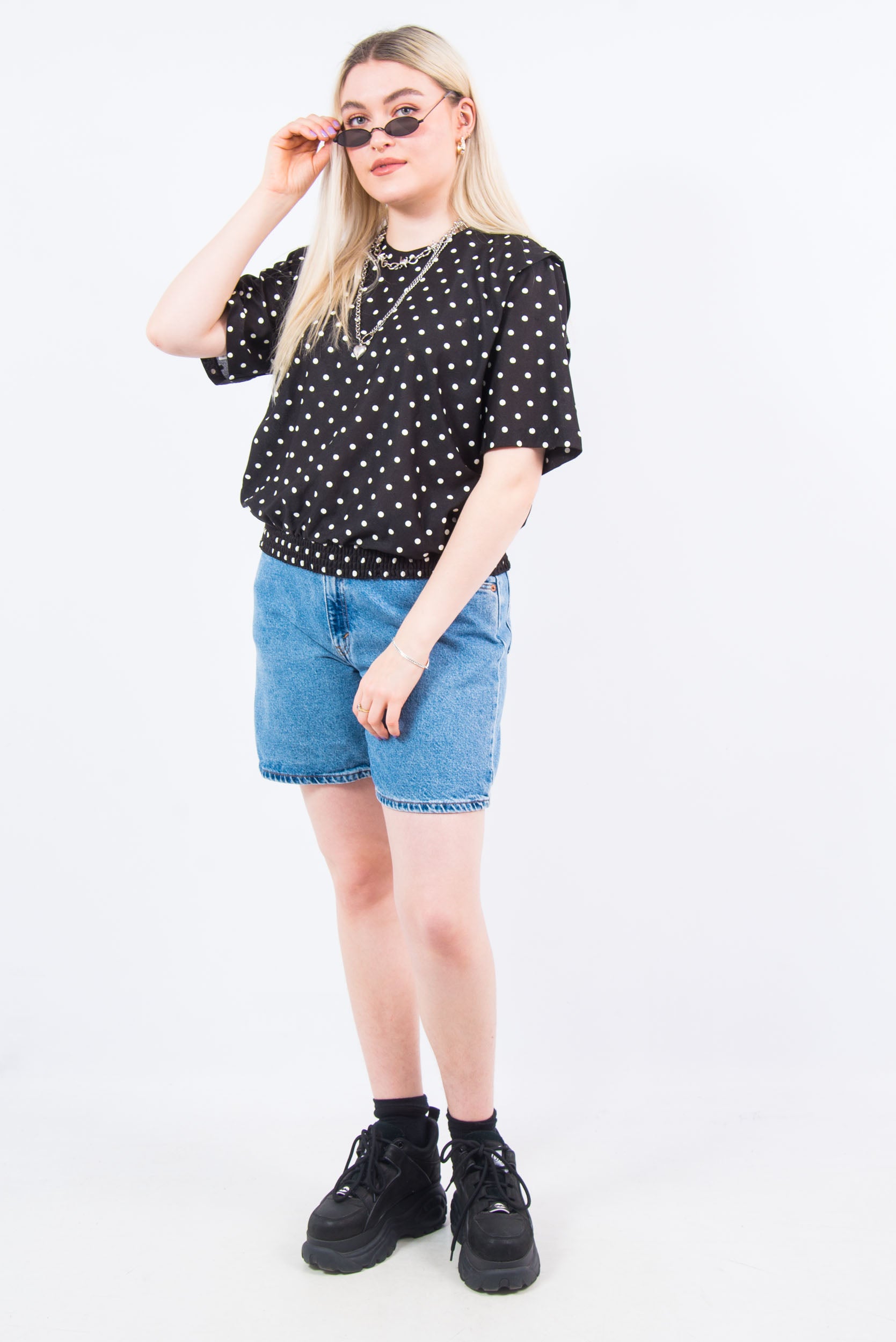 Vintage 90's polka dot black and white top with elasticated hem and zip fastening at the back.