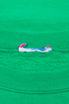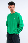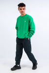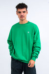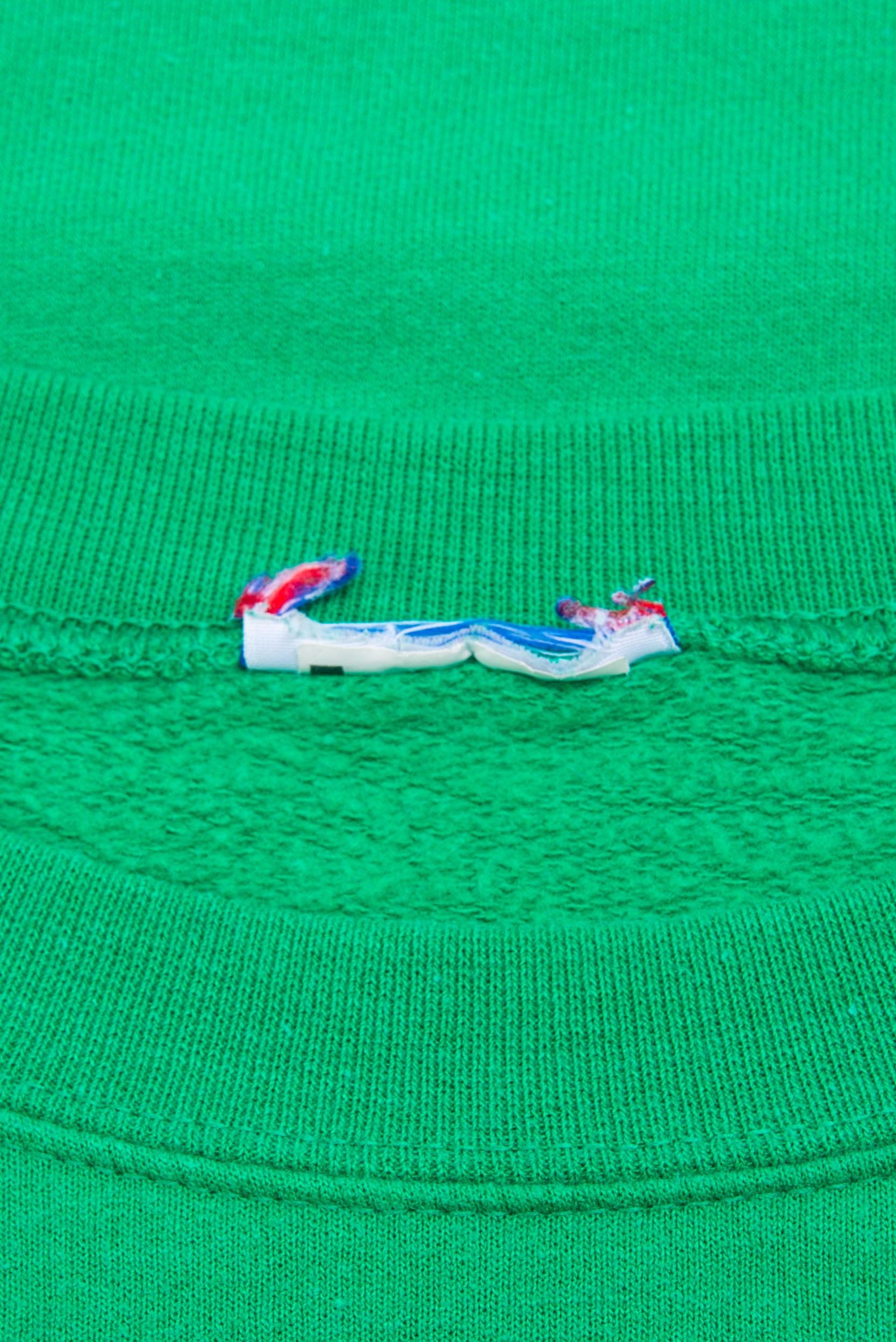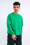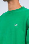 Vintage green Champion sweatshirt with embroidered logo on chest and sleeve cuff.