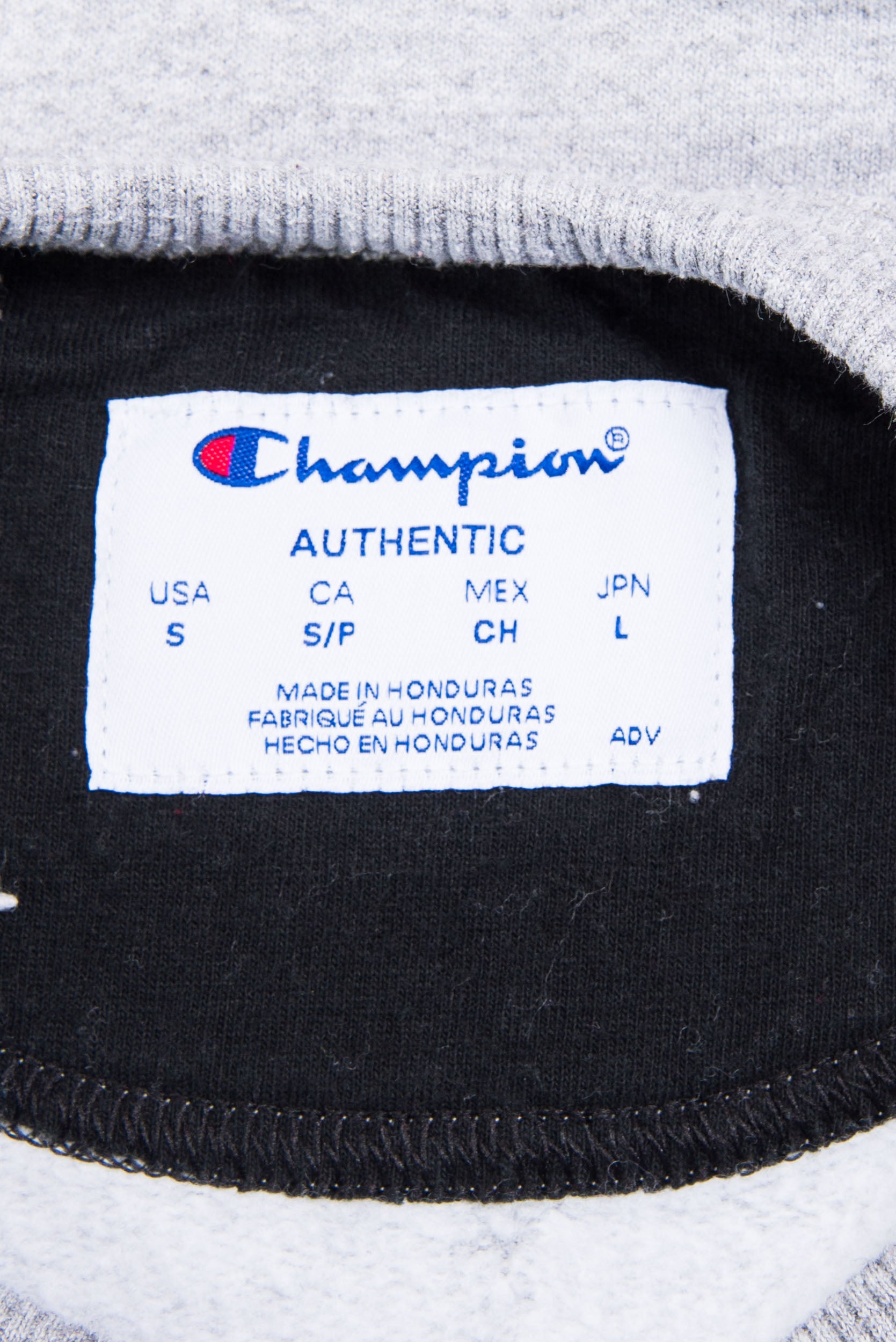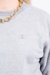 Vintage Champion sweatshirt with embroidered logo on front upper and left cuff.
